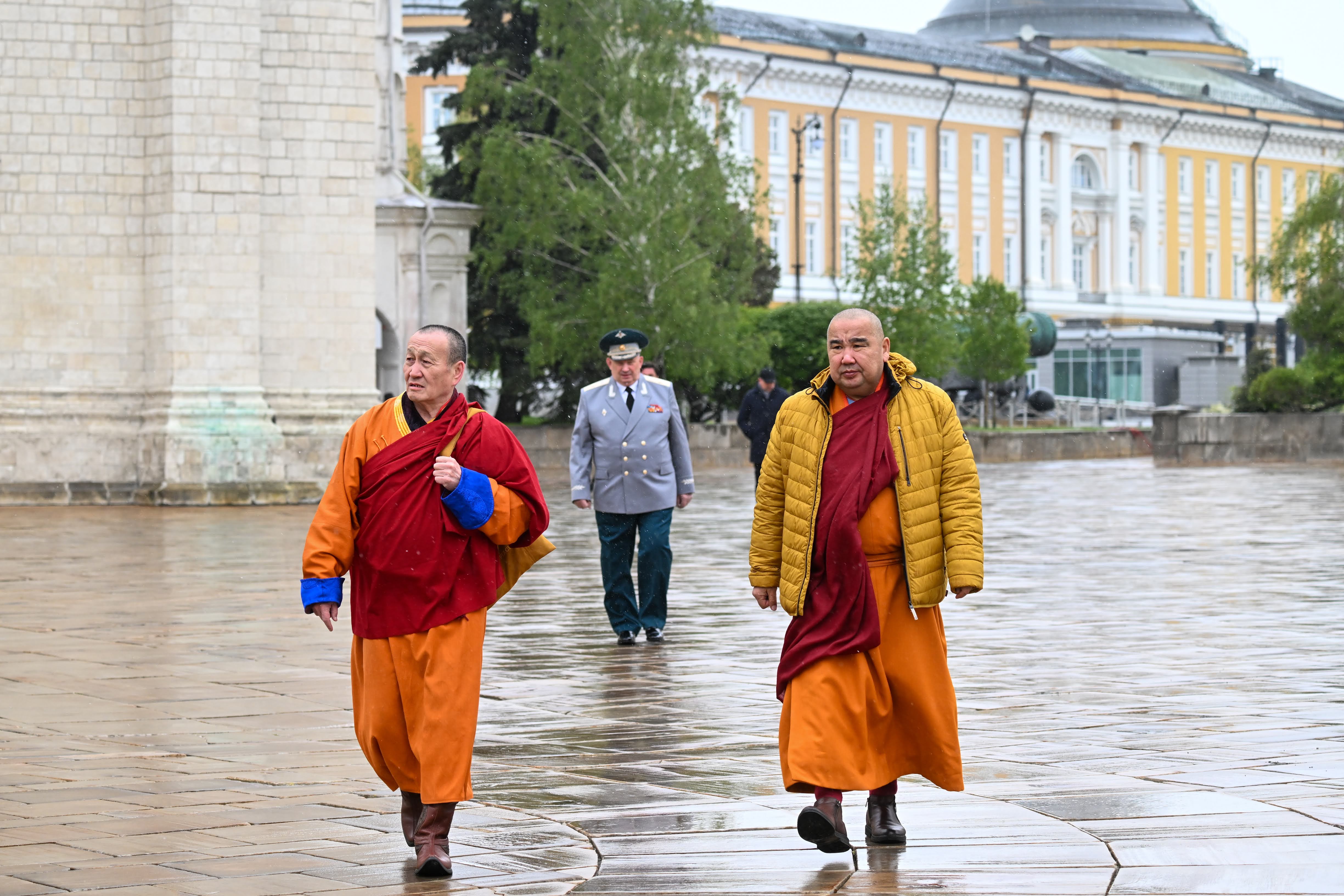 Фото: RUSSIA, MOSCOW - MAY 7, 2024: Buddhist clergymen arrive for an inauguration ceremony for Russia's President Vladimir Putin at the Grand Kremlin Palace. Pavel Bednyakov/POOL/TASS Ðîññèÿ. Ìîñêâà. Ãëàâà Áóääèéñêîé òðàäèöèîííîé ñàíãõè Ðîññèè Ïàíäèòî õàìáî-ëàìà Äàìáà Àþøååâ (ñëåâà) ïåðåä íà÷àëîì öåðåìîíèè èíàóãóðàöèè ó Áîëüøîãî Êðåìëåâñêîãî äâîðöà. Ïàâåë Áåäíÿêîâ/POOL/ÒÀÑÑ